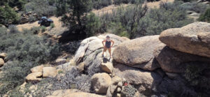 It was hot here all week, but only in the low 90’s. Everywhere south of us or at a lower altitude was in the triple digits. We had a nice breeze up on our perch, and with the awnings to protect from the scorching sun, we managed to stay comfortable. We went exploring in Matt’s side-by-side each day and a few evenings. We found some cool spots to hike/climb.