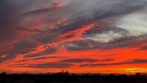 Thursday the wind was horrific, and Cosmo and I went outside only to pee and move the solar suitcase to a spot where it wouldn’t be carried away by the wind. Friday was even windier with gusts over 30 mph. All of us (Me, Bonnie, Matt, Sunshine and Cosmo) stayed mostly in our vans which rocked like we were in an earthquake. Friday night the temps dropped down into the 30’s. We survived and the weather channel says we’ll have abundant sunshine and temps in the mid to upper 70’s for the coming week. I hope they are correct.