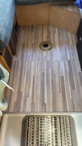 I got new flooring, and although hesitant to start, I went for it. I had no idea what I’d find when I removed the 27-year-old carpet, but discovered that I had a pretty solid subfloor to work with. It was a tight space with many odd-angle cuts to make, but I did it in just about 5 hours.