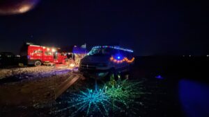 Tuesday night was the official opening bonfire. Usually, Skoolie Palooza is the last week in January, but over the years, the people arriving early (me included) have realized that the week prior to the official event is even more fun. It’s the old school (no pun intended) crowd. Many of us know each other. Everyone is kind, warm and happy to be here. So DJ Matt decided to announce the “official opening” and gathered downed ocotillo cactus branches, a few giant logs and an array of pallets and constructed a fire that could be seen for a mile away.